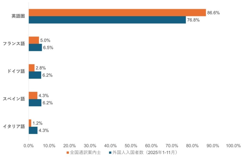 データを見ても、フランス語・ドイツ語・スペイン語のガイドは、日本全体で大きく不足しています。