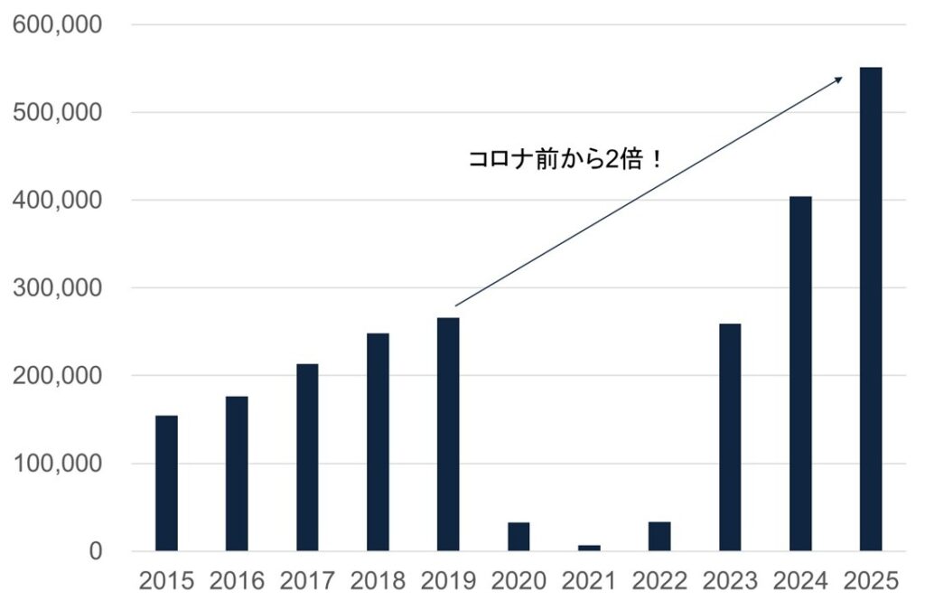 2025年のツアー参加者数は、2024年比で 5.3倍 に増加しました。